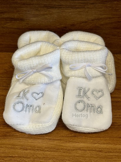 - Witte babyslofjes met geborduurde tekst: Ik hou van oma.