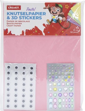 Knutselpapier pastel - met 3D stickers