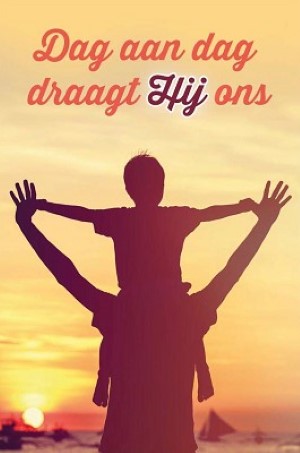 - Opdruk: Dag aan dag draagt Hij ons. Formaat 60 x 90 mm. Meer